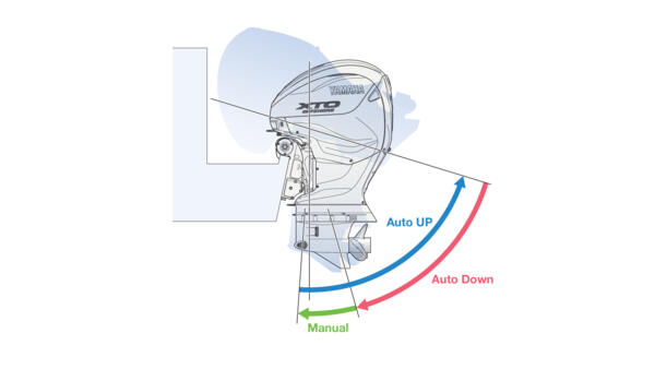 "Ett dubbeltryck. Full tilt. Med TotalTilt™ kan du luta motorn helt upp och ner från vilken position som helst, med en inbyggd varningssignal och tiltbegränsare för ökad trygghet. Inga krampande fingrar. Inget behov av att hänga över akterspegeln som om du tappat något."